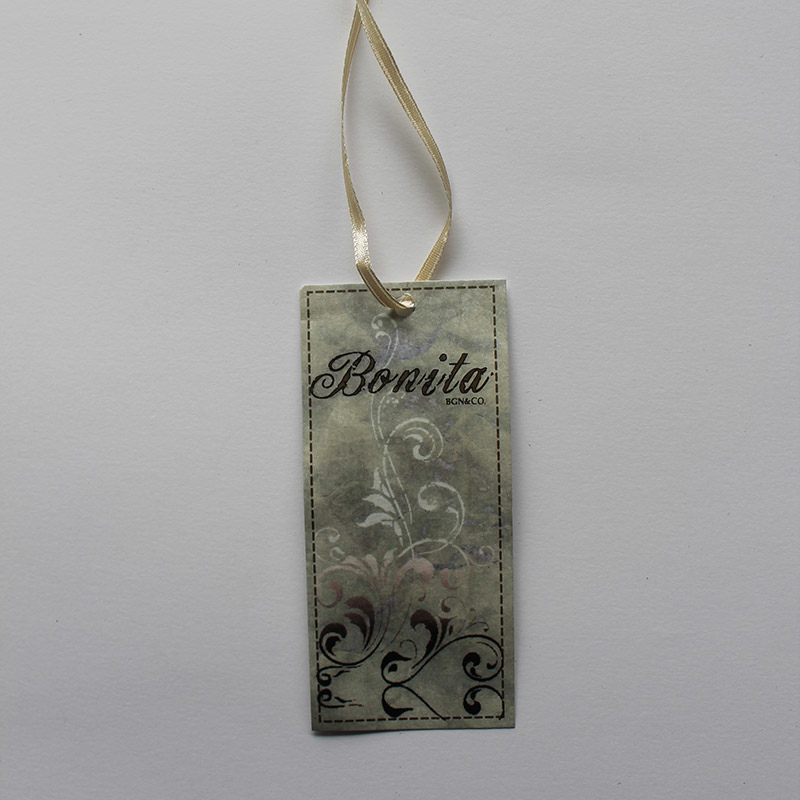 吊牌:指附著在服裝等商品上有著該商品的品牌名稱、標識、產地等信息的小卡片。